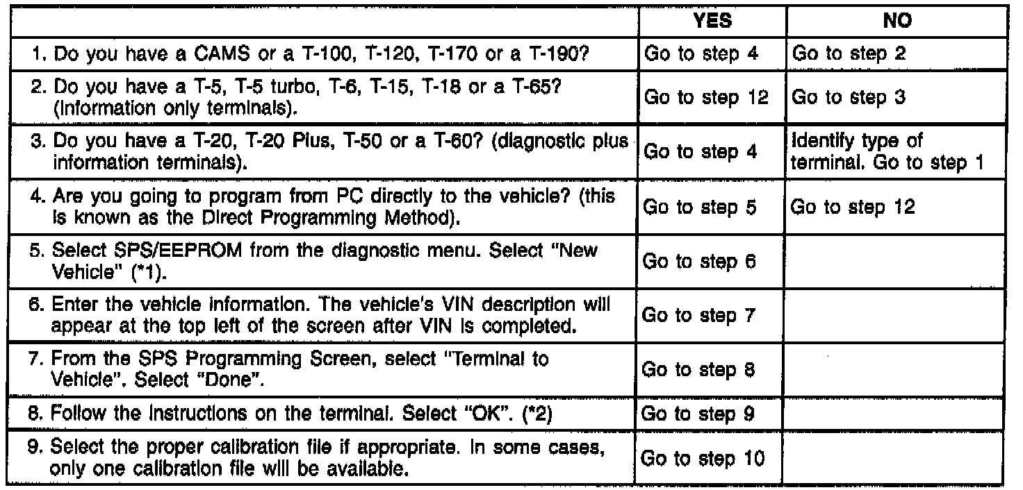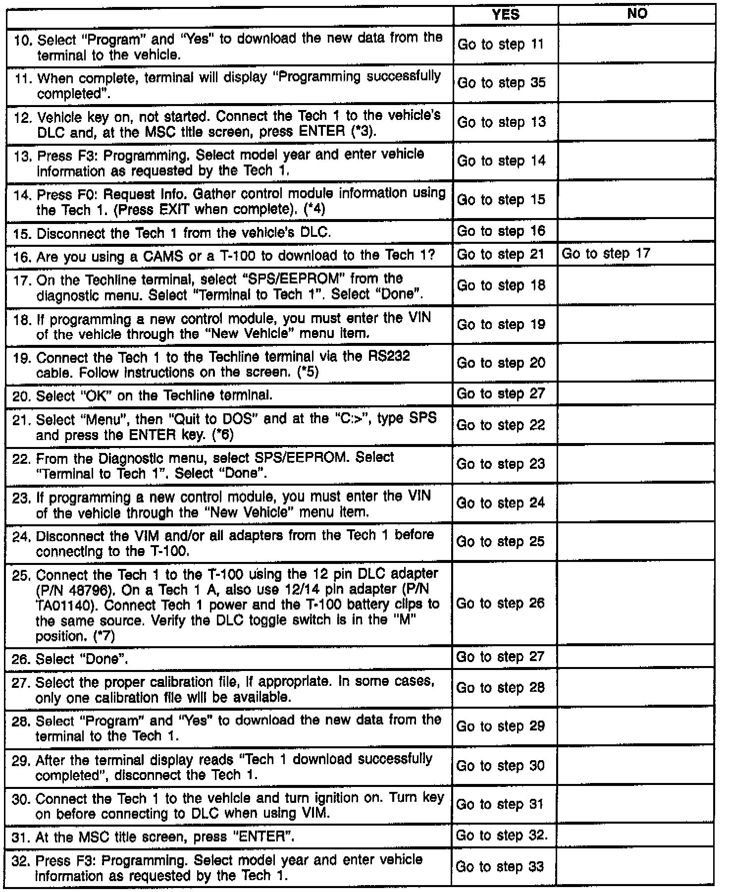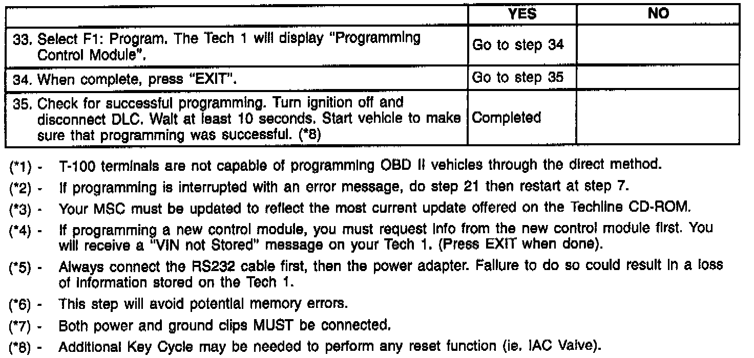 This bulletin is being issued to assist technicians with the reprogramming of vehicles. The following chart was developed to be used by technicians that are familiar with the Techline terminals, Tech 1 and all of its adapters: