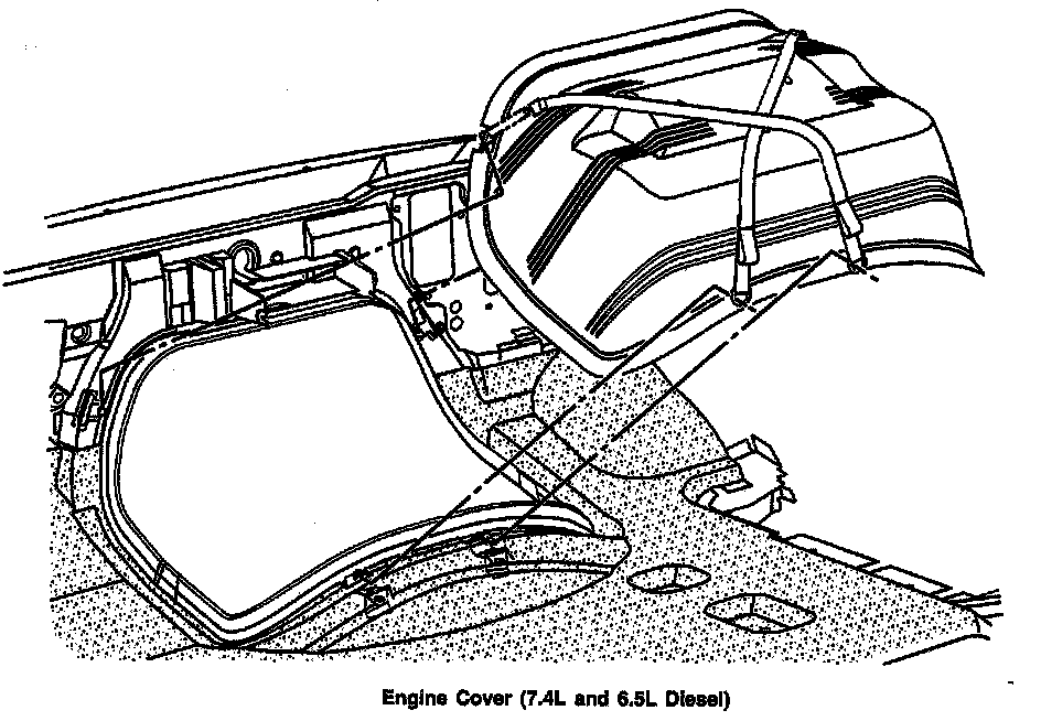 IMPORTANT: Ensure that the engine cover sealing strip is properly seated between the engine cover and the vehicle.