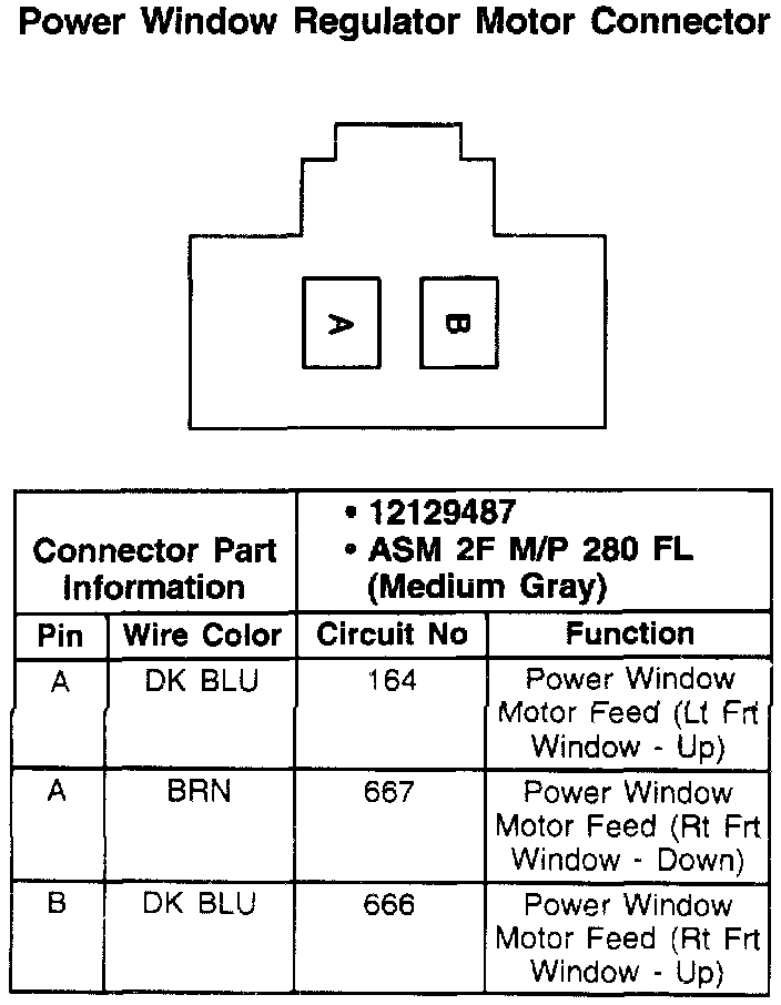 Power Window Regulator Motor Connector: