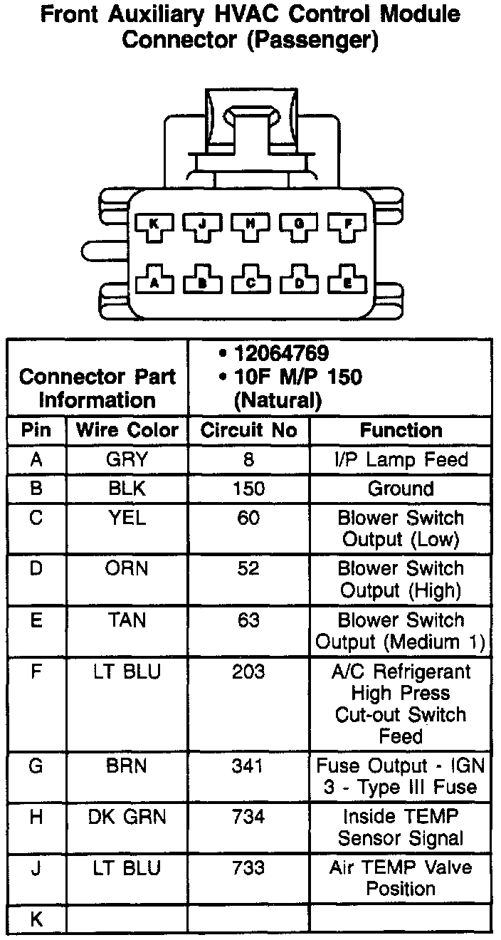 Front Auxiliary HVAC Control Module Connector (Passenger):
