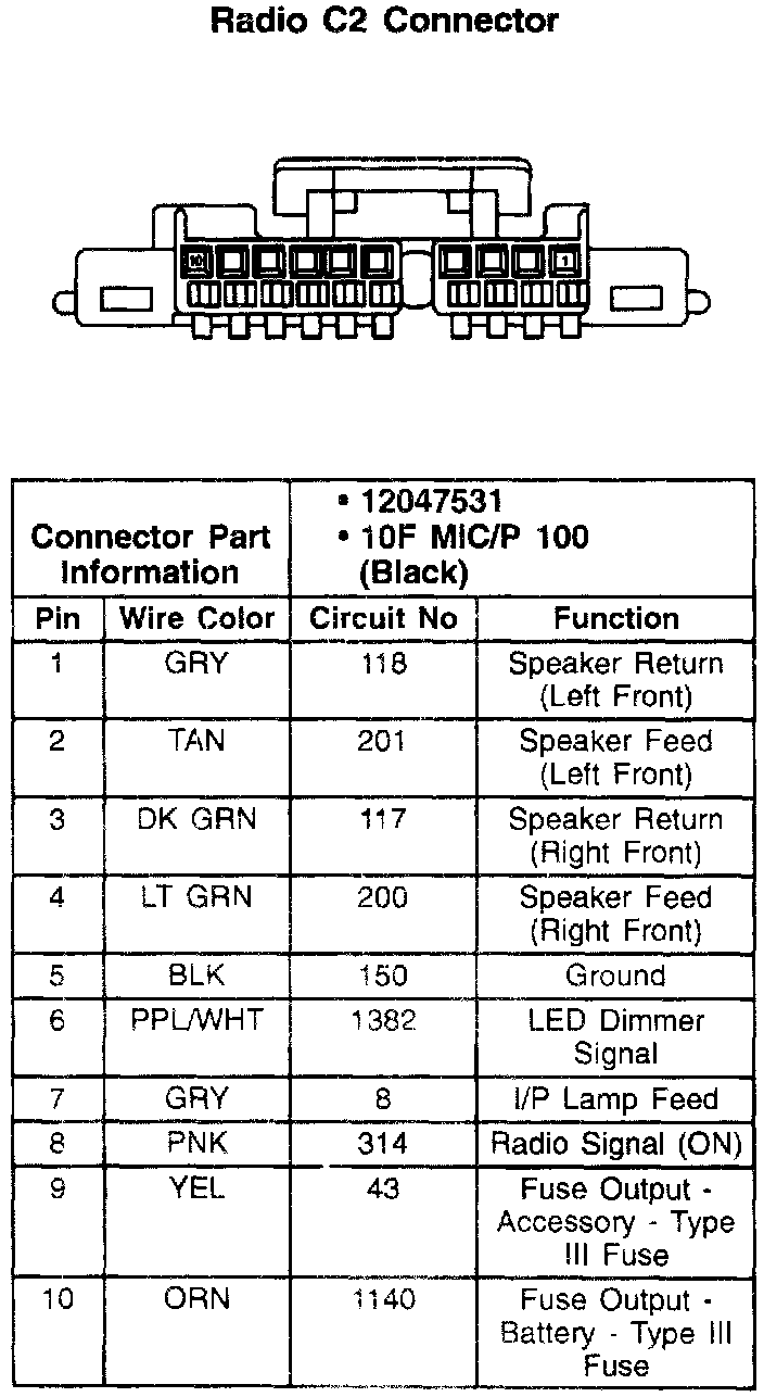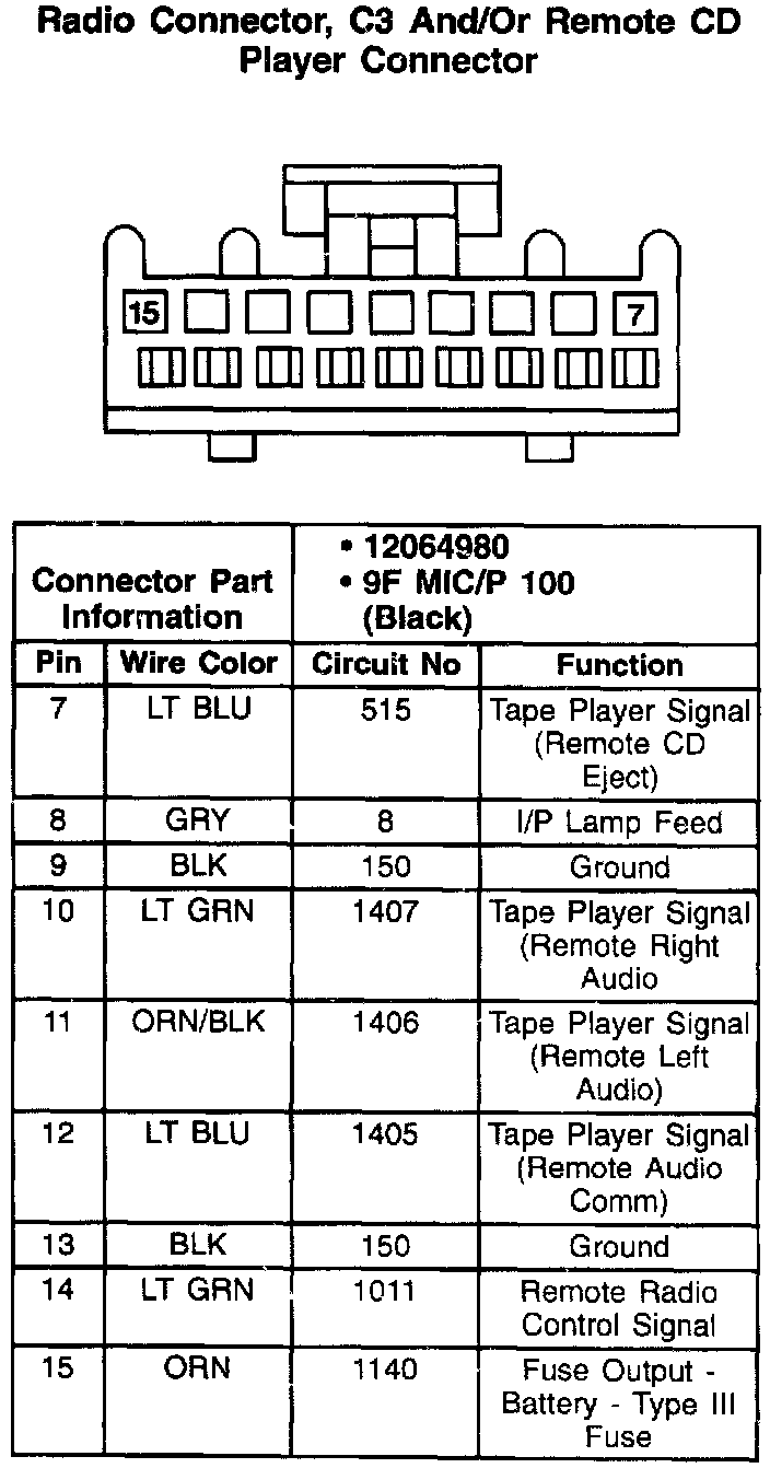 Radio Connector, C3 And/Or Remote CD Player Connector: