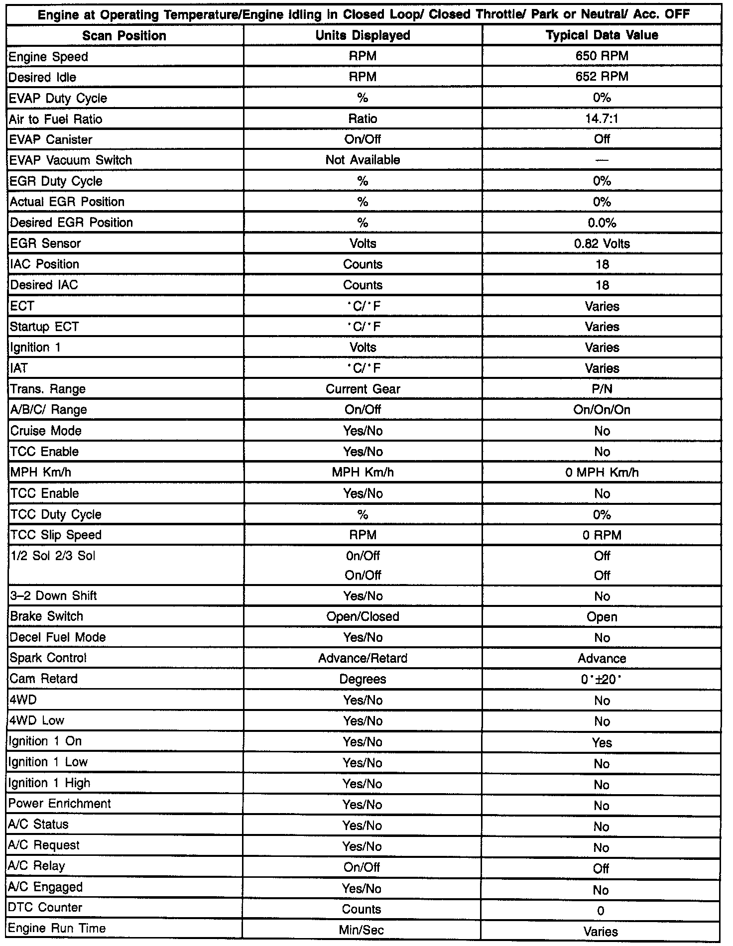 Scan Tool Data List