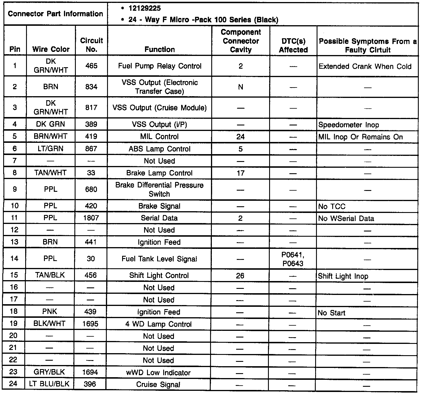 Pins 1 - 24: