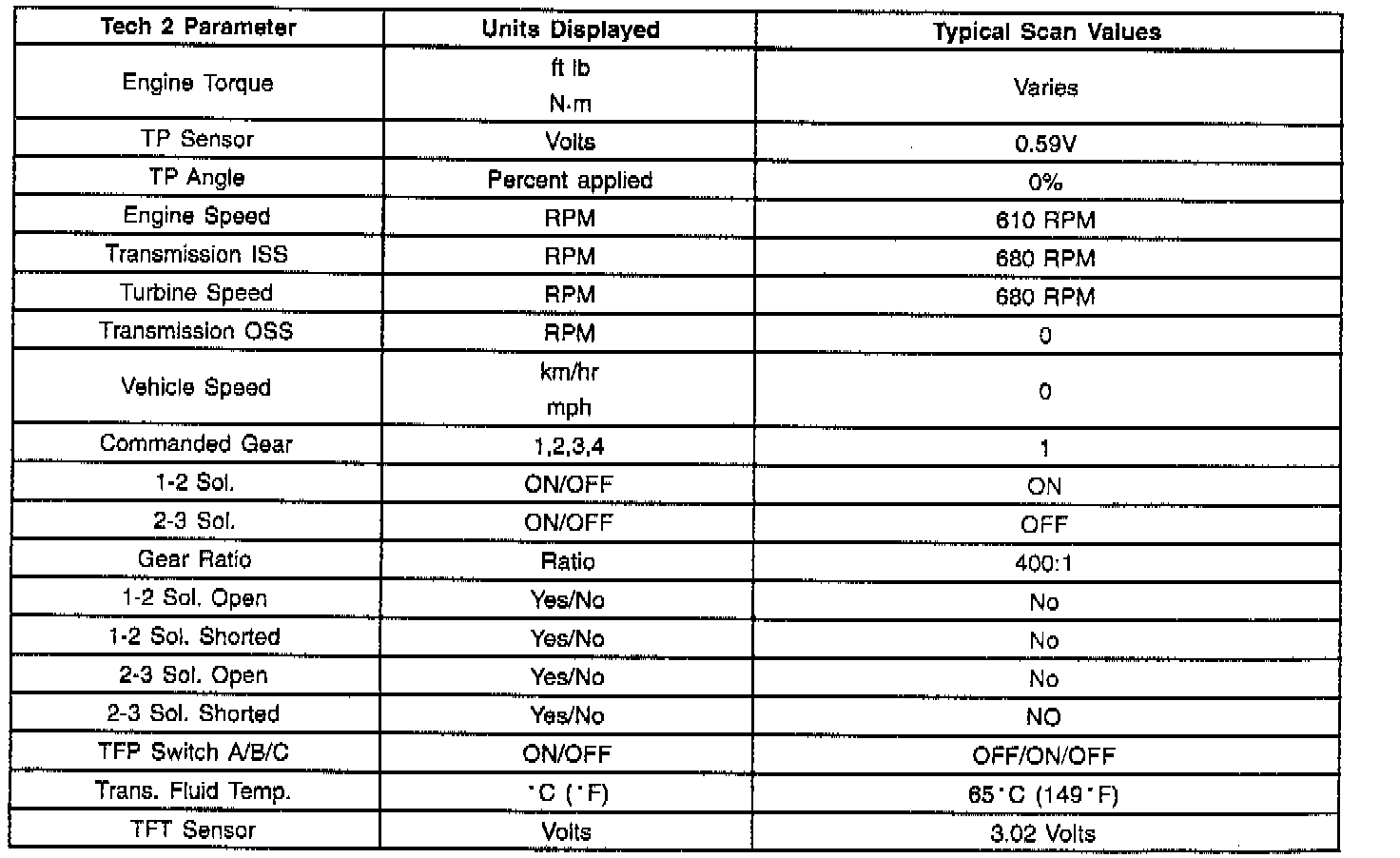 Scan Tool Datal List