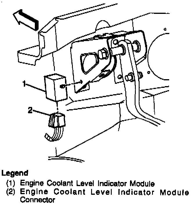 2. The engine coolant level indicator module to the brake pedal bracket.