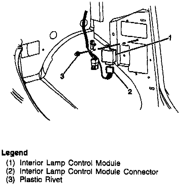 3. The push pin rivet to retain the interior lamp control module.