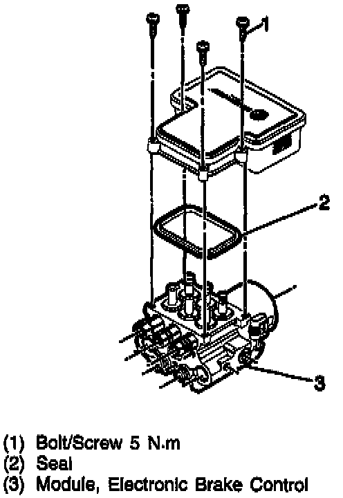 ^ Do not reuse the EBCM gasket or mounting bolts. Always install a new gasket and mounting bolts with a new EBCM.
