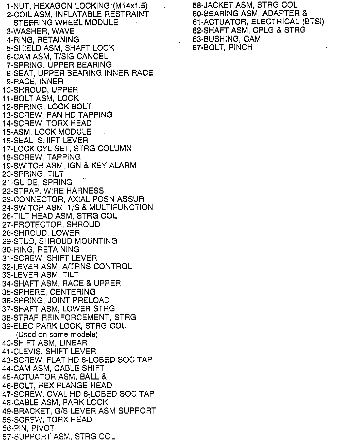 Steering Column - Tilt Column