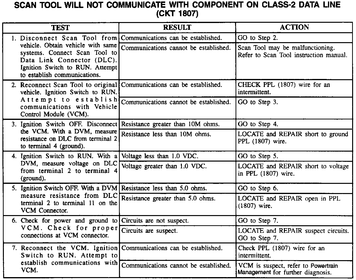 Scan Tool Does Not Communicate With Comp. on Class-2 Data Line