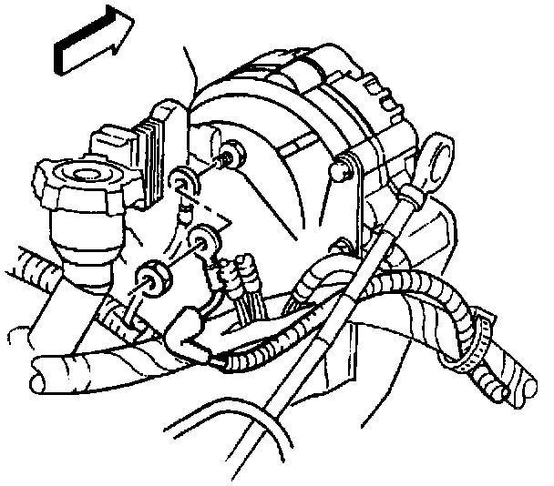 4. Remove the generator brace nut from the exhaust manifold stud.