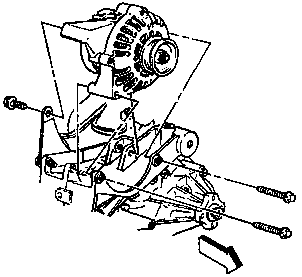 10. Remove the two generator mounting bolts.