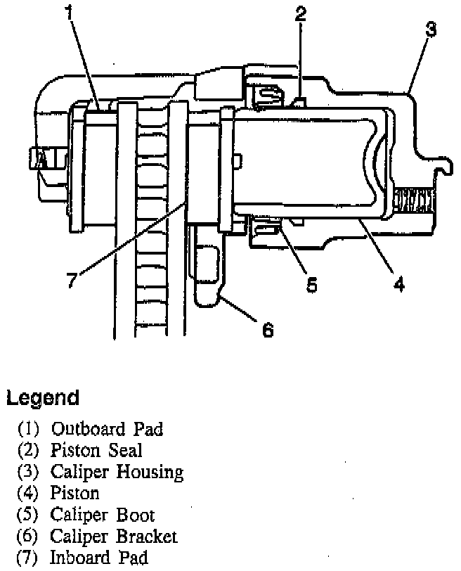 6. Brake hose bolt attaching inlet fitting only if caliper is to be removed from vehicle for unit repair (overhaul). If only brake pads are being replaced, there is no need to disconnect inlet fitting.