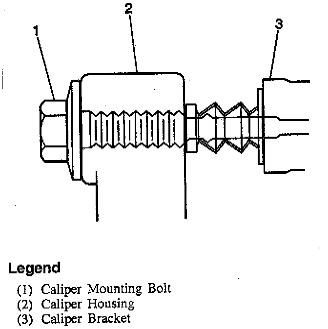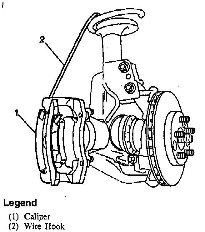 NOTE: Plug openings in caliper housing and brake hose to prevent brake fluid loss and contamination.