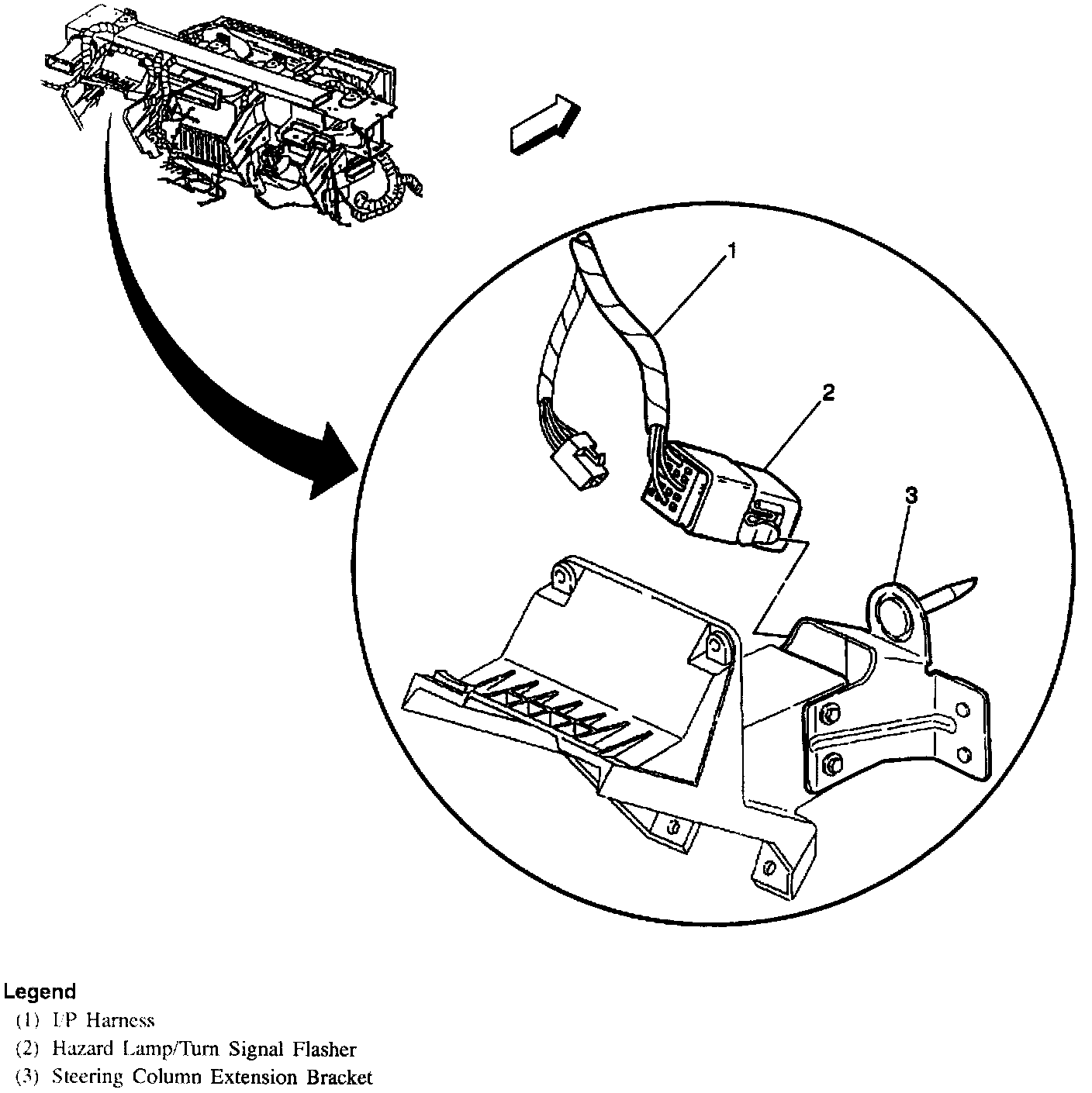 RH Side Of I/P, Above Base Steering Column: