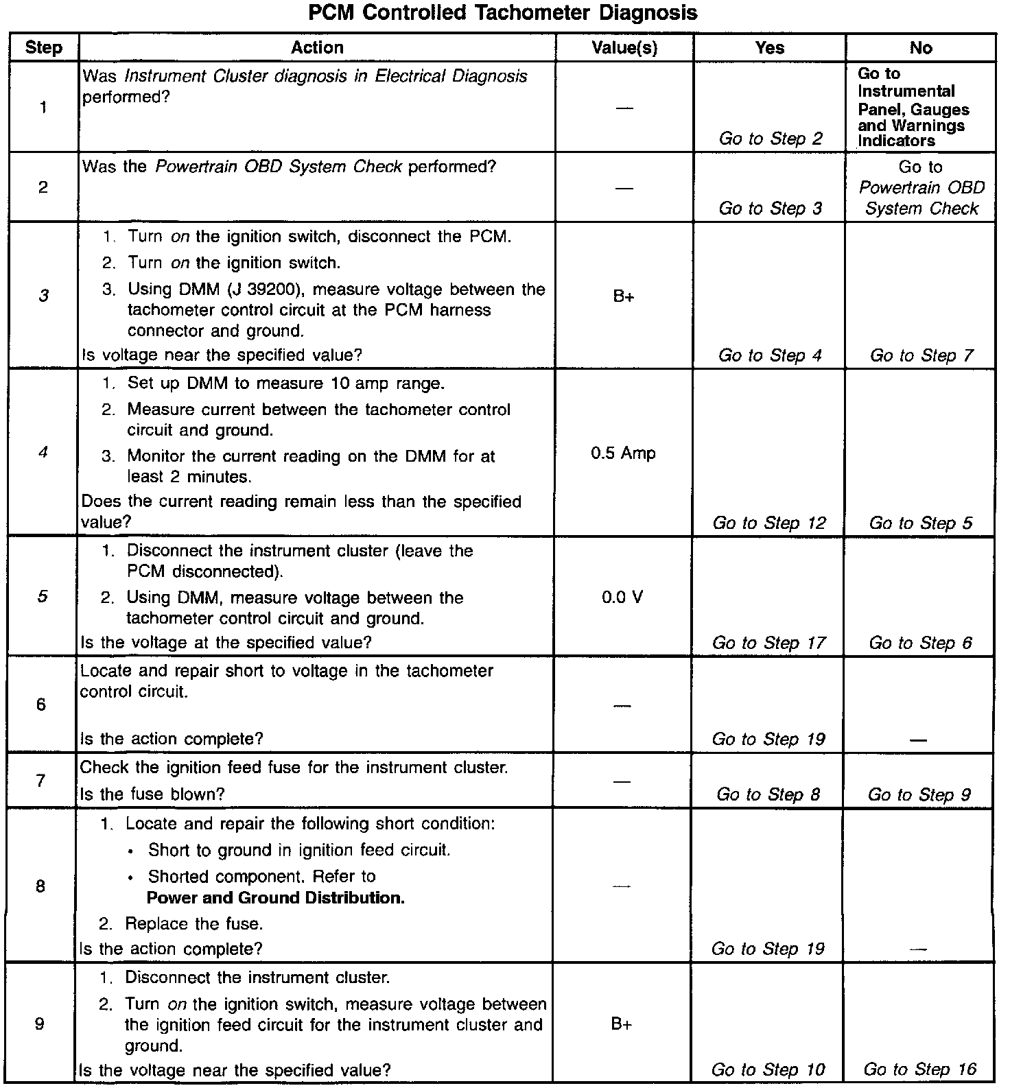 PCM Controlled Tachometer Diagnosis