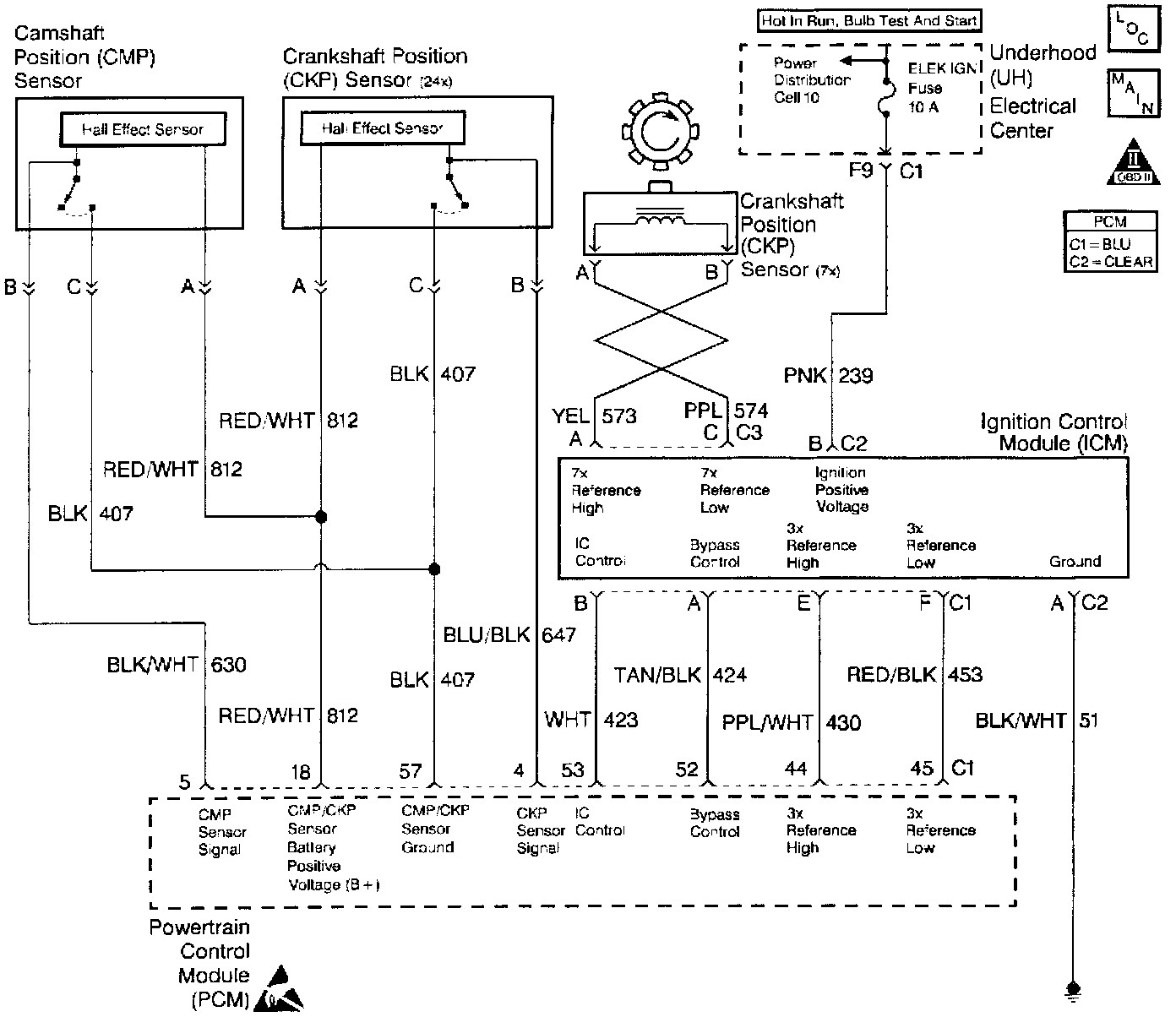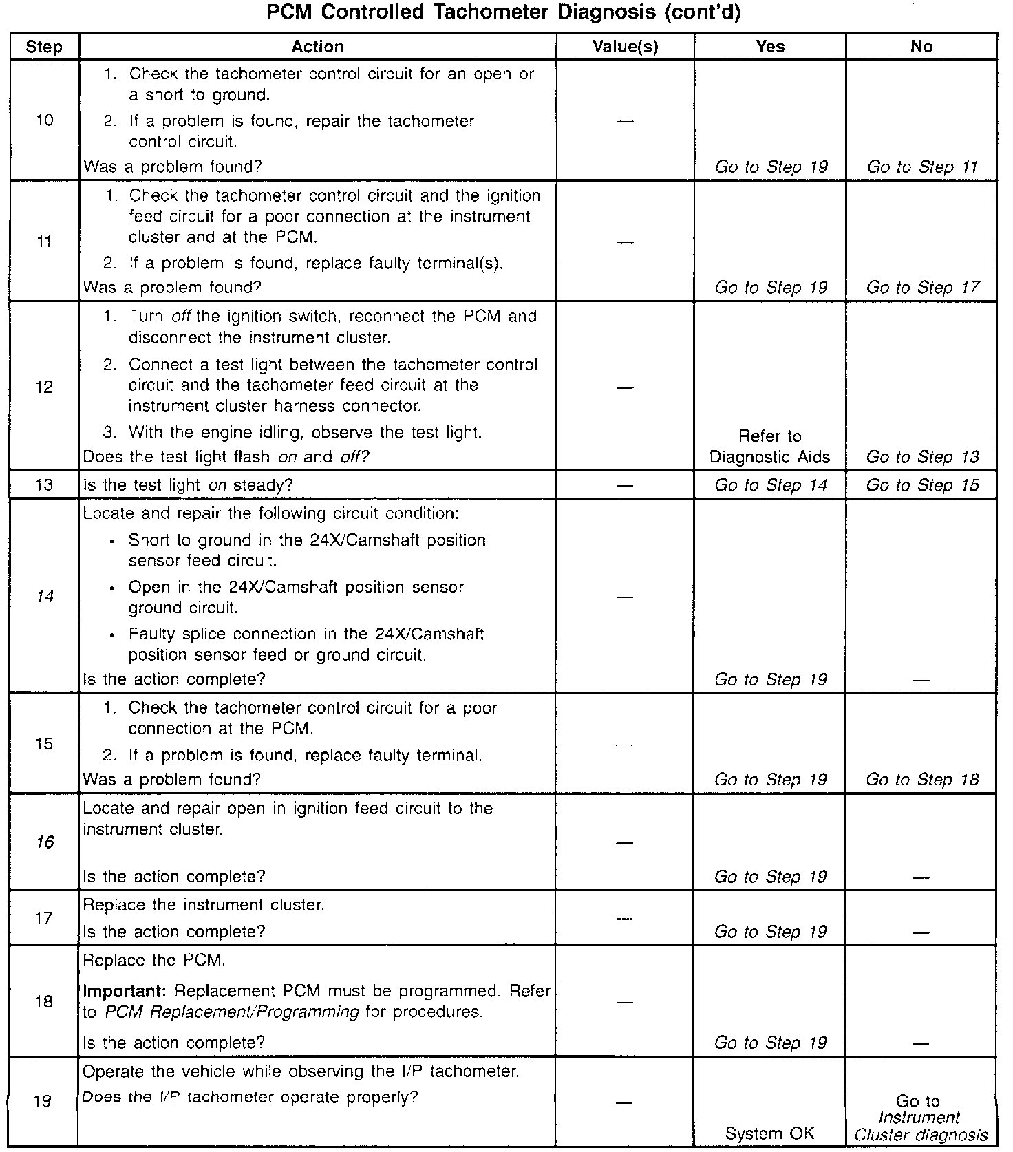 14. A fault in the 24X/Camshaft position sensors feed or ground circuits will result in the loss of both PCM input pulses. Without a 24X reference pulse the PCM can not begin tachometer pulse control causing an inoperative tachometer.