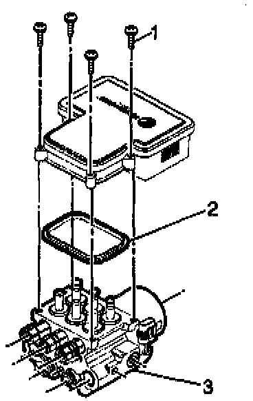 4. Ensure that the new EBCM gasket (3) is aligned correctly.