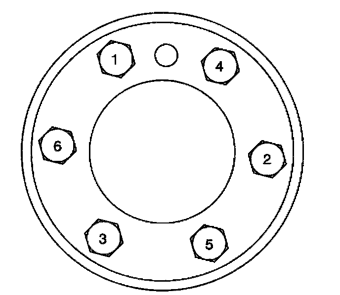 Tighten the engine flywheel bolts in sequence (1-6) to