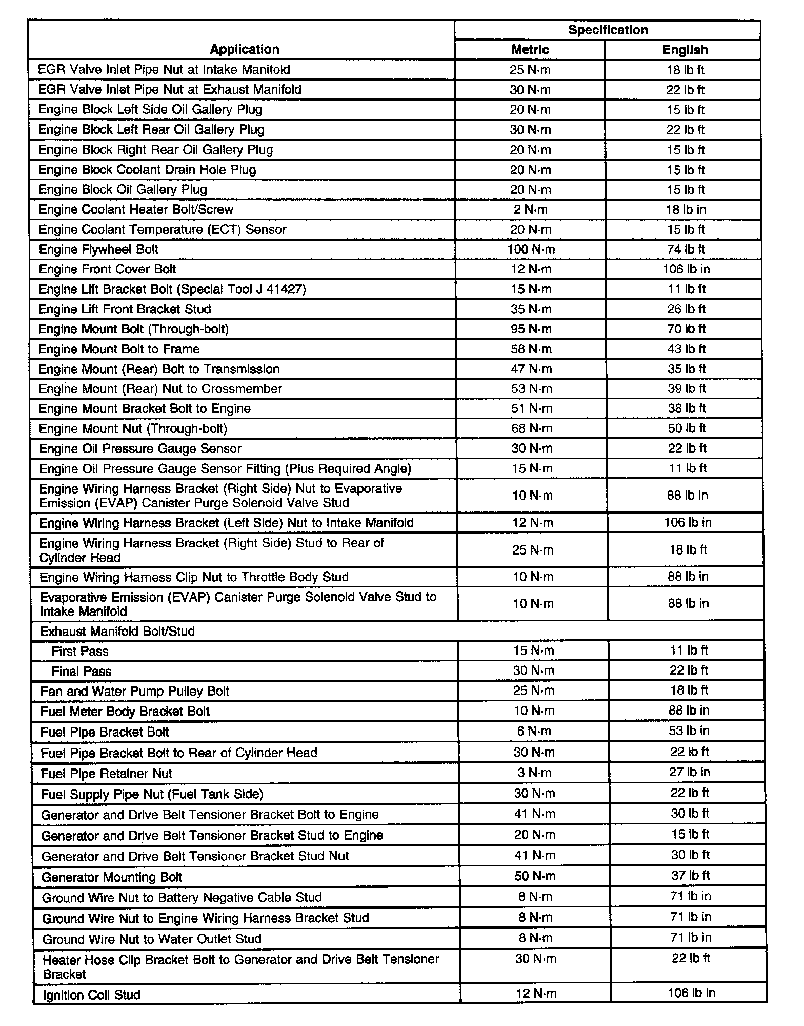 Engine Specifications