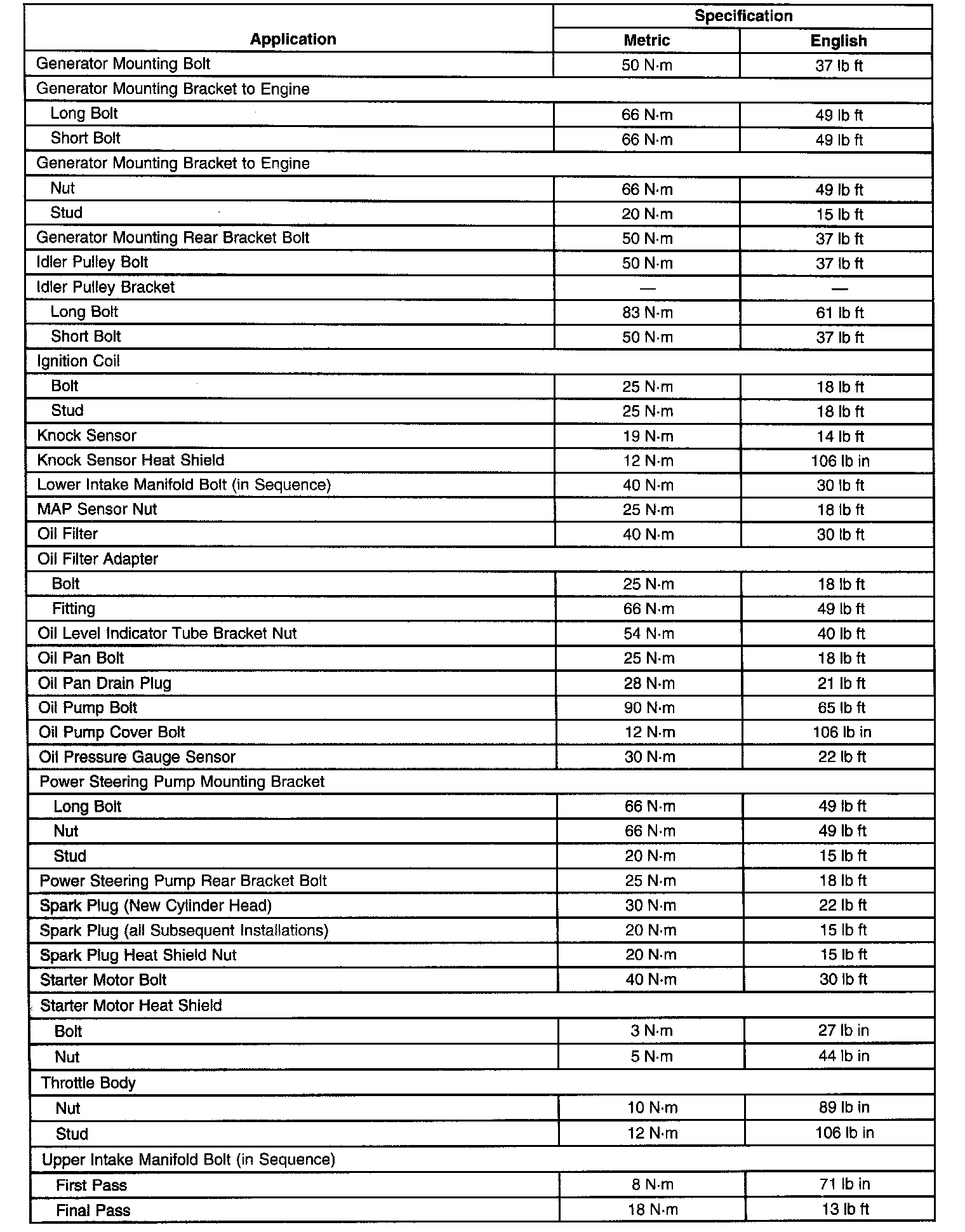 Engine Specifications