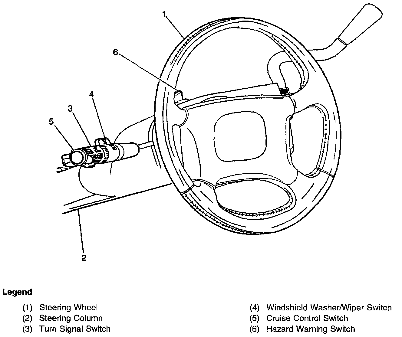 Steering Wheel, Steering Column, Turn Signal Switch, Windshield Wiper/Washer Switch, Cruise Control Switch, Hazard Warning Switch: