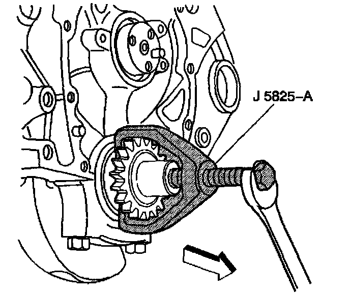 8. Use the J 5825-A in order to remove the crankshaft sprocket.
