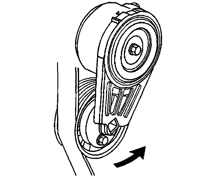 4. Install a 3/8 inch drive wrench on the drive belt tensioner arm and rotate the arm counterclockwise.