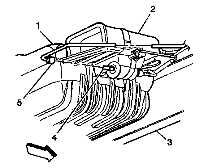 4. Remove the in-line fuel filter clamp attaching hardware.