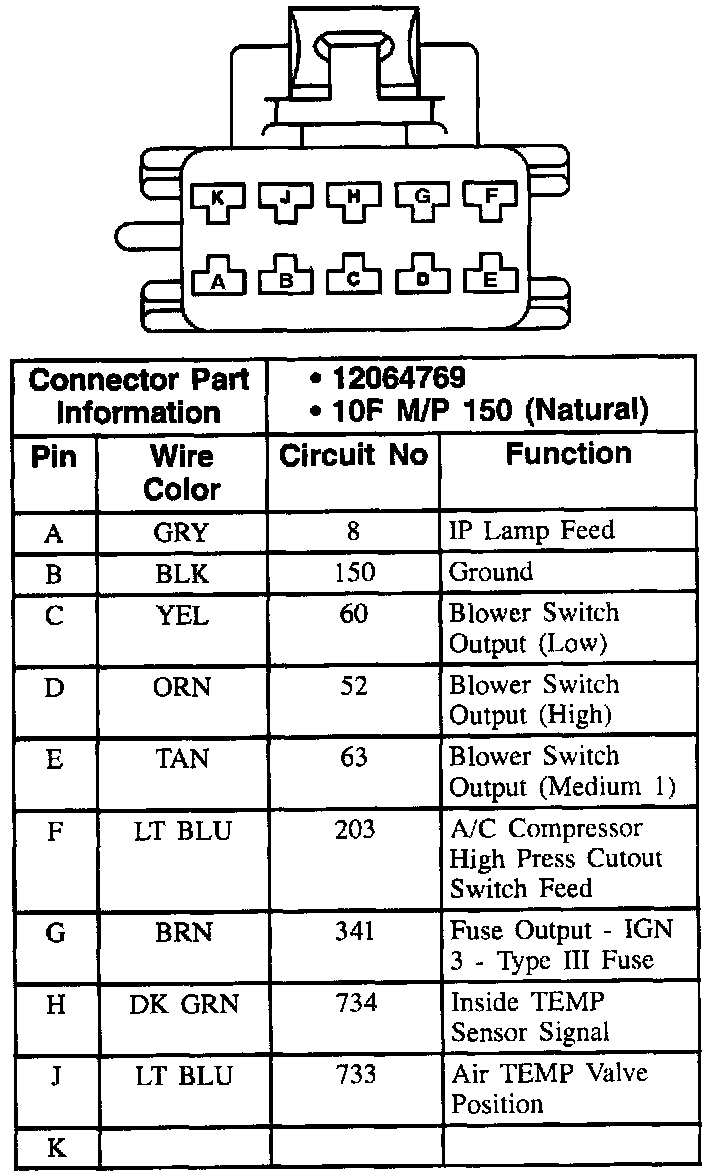 Front Auxiliary HVAC Control Module Connector (Passenger):