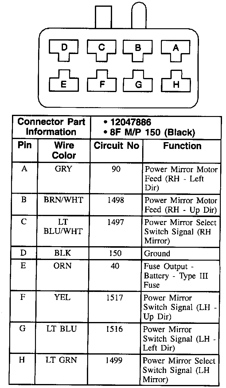 Power Outside Rearview Mirror Remote Control Switch Connector: