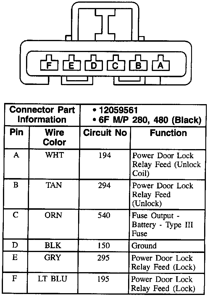 Power Door Lock Relay Connector: