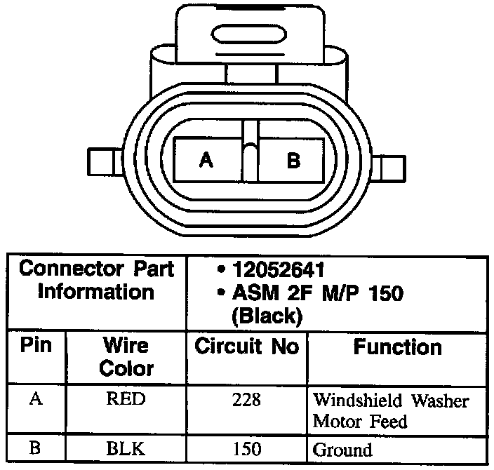 Windshield Washer Pump Motor Connector: