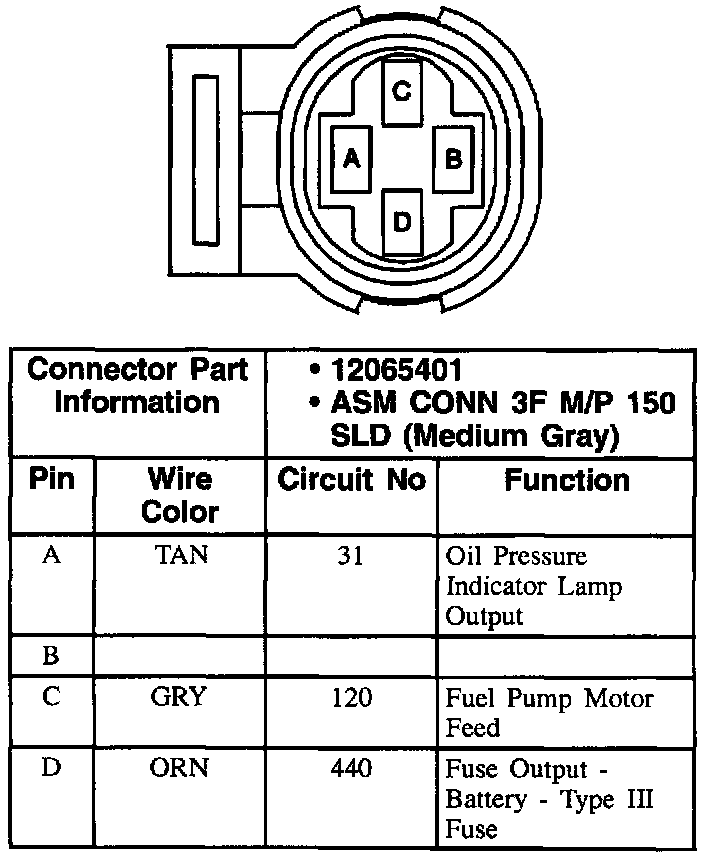 Fuel Pump Switch And Engine Oil Pressure Gauge Connector: