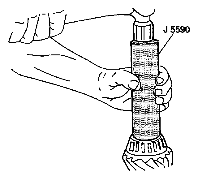 3. Install the inner bearing cone on the pinion. Drive the inner bearing cone onto the pinion shaft using the J5590.