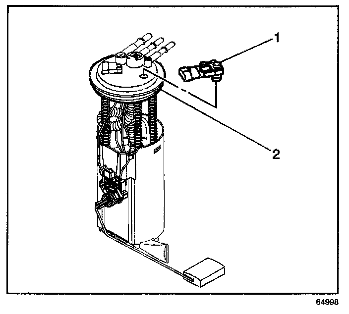 1. Install the Fuel Vapor Pressure Sensor (1) on the fuel sender assembly (2).
