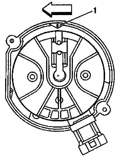 9. Once the distributor is fully seated, align the distributor rotor segment with the number 6 pointer (1) that is cast into the distributor base.