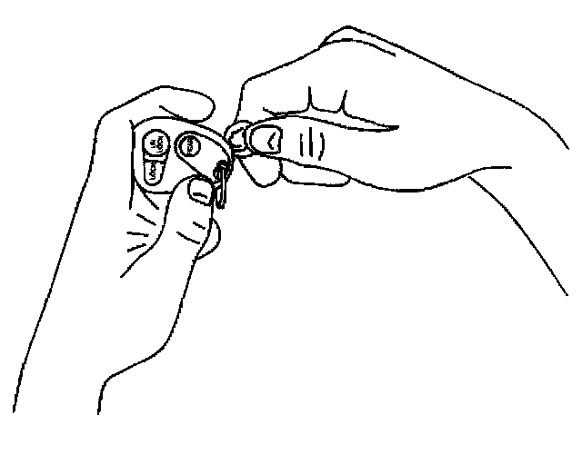 1. Insert a small coin between the two halves of the transmitter case at the slot provided near the key ring hole.