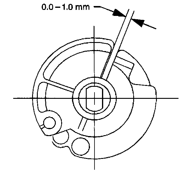 2. Adjust the length of the cruise control cable until there is a clearance of 0.0-1.0 mm (0.0-0.04 in) between the cruise control cable and the accelerator cable throttle lever cams.