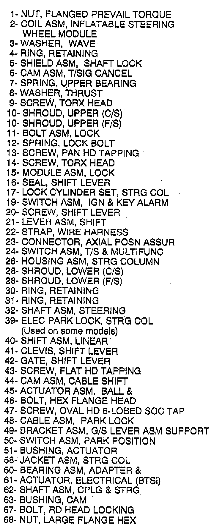 Standard Steering Column - Legend - Part 2 Of 2:
