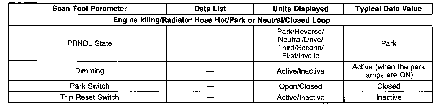 This data input refers to the PRNDL position data that is communicated to the cluster over the Class 2 serial data line by the PCM/VCM. The value of this parameter corresponds to the gear selected on the PRNDL display. The value of this parameter will be INVALID under the following conditions: