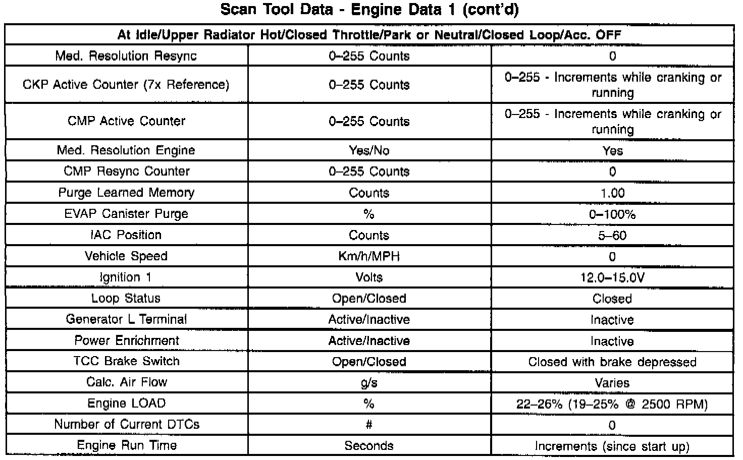 Scan Tool Data List