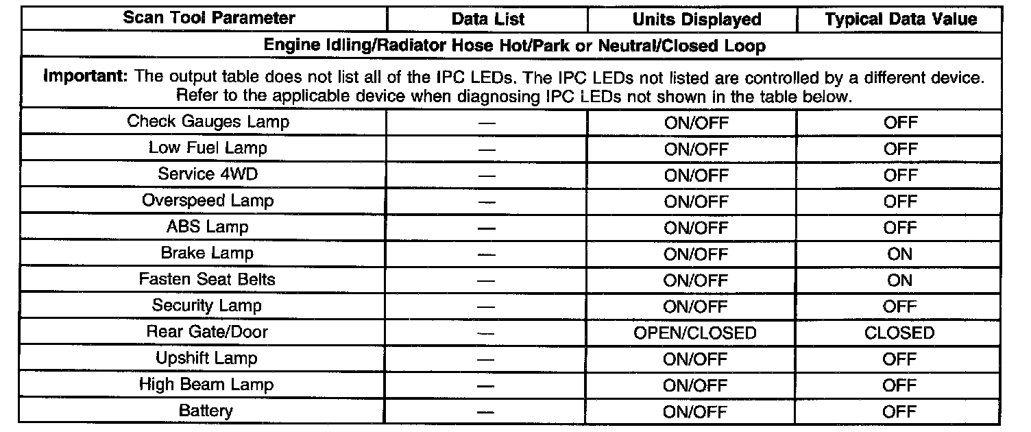Scan Tool Data: Outputs: