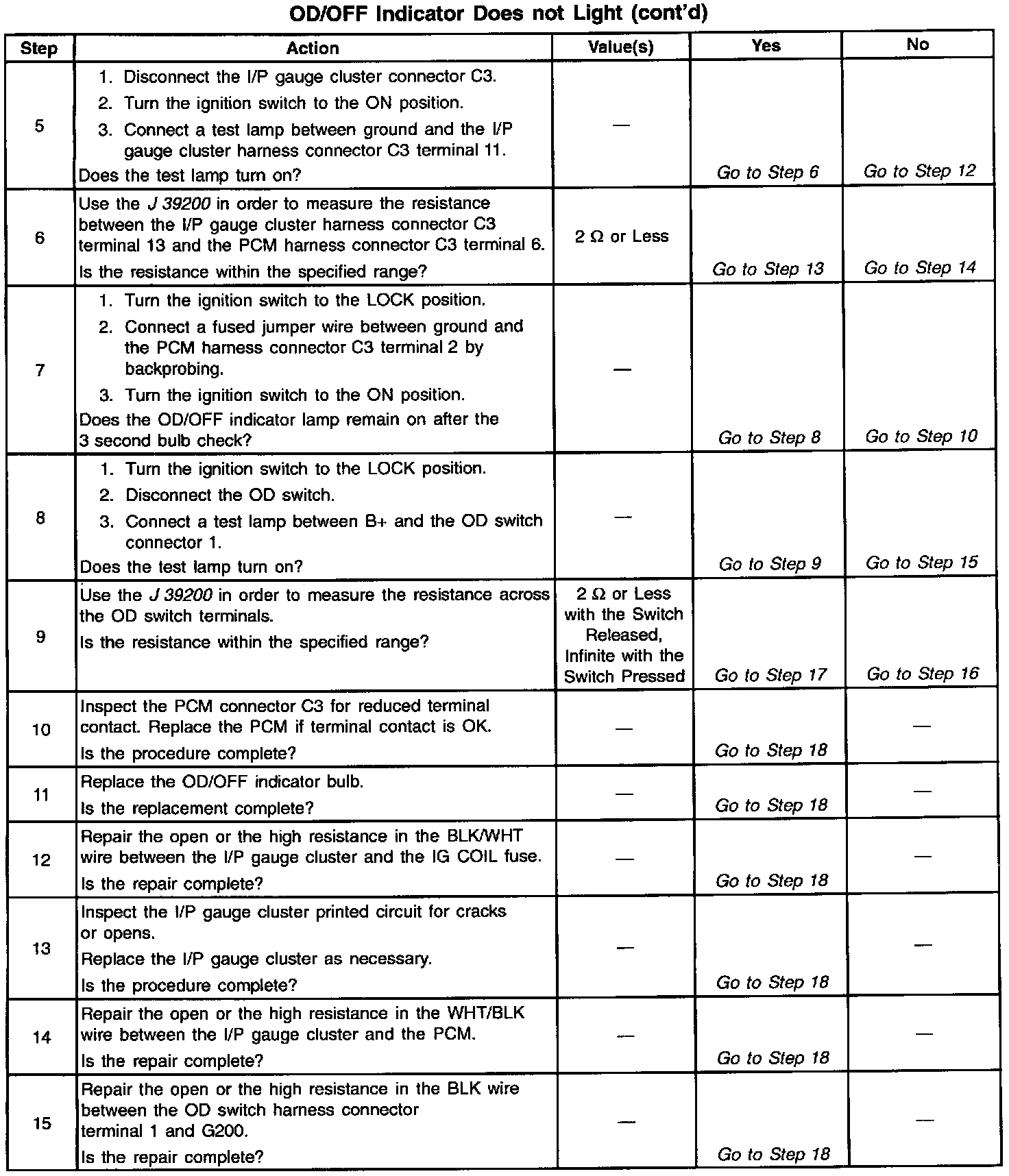 18. This step tests for proper operation of the OD/OFF indicator.