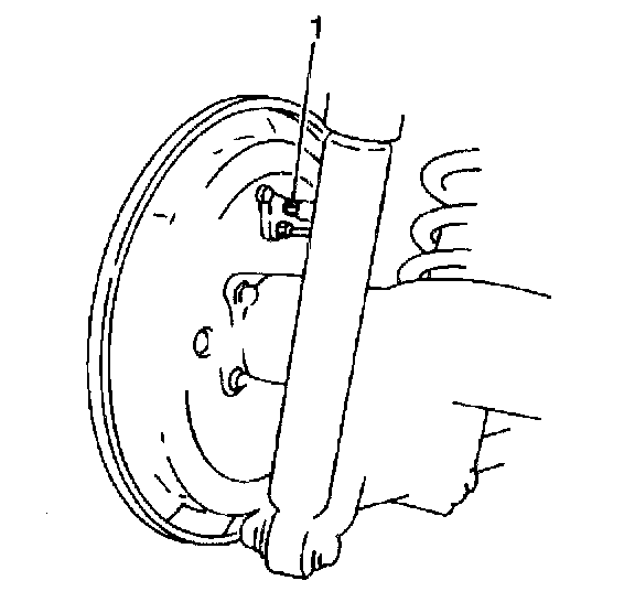 6. Attach a clear plastic or vinyl tube (1) to the bleeder plug. Submerge the other end of the tube in a clear container (2) partially filled with brake fluid.