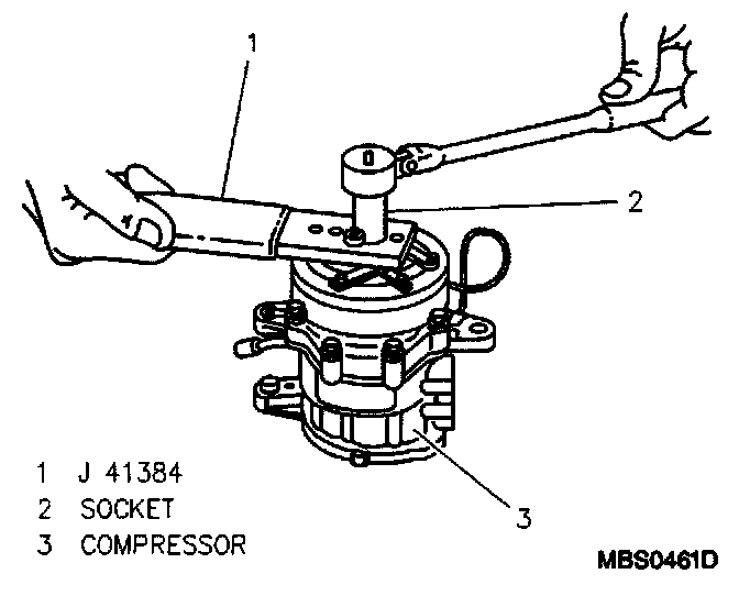 5. Pressure plate washer and nut to compressor drive shaft using tool J 41384.