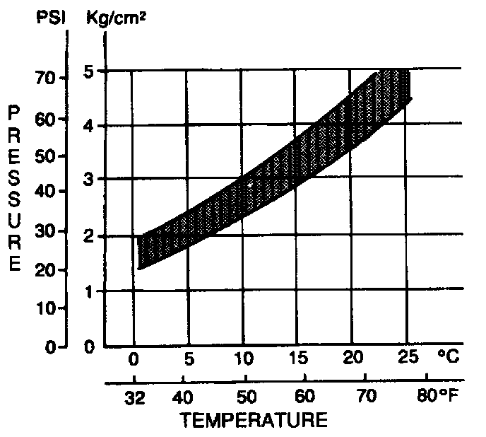 7. The pressure/temperature relationship should fall within the specifications shown. Otherwise, replace the expansion valve.