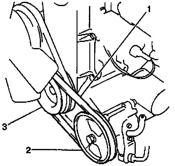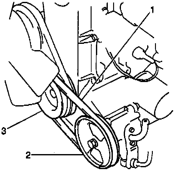 3. Remove the power steering pump drive belt (1) from the pulleys.