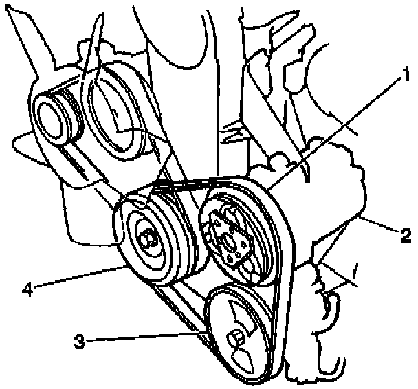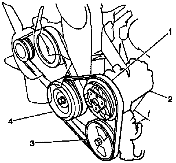 3. Remove the A/C compressor drive belt (1) from the pulleys.