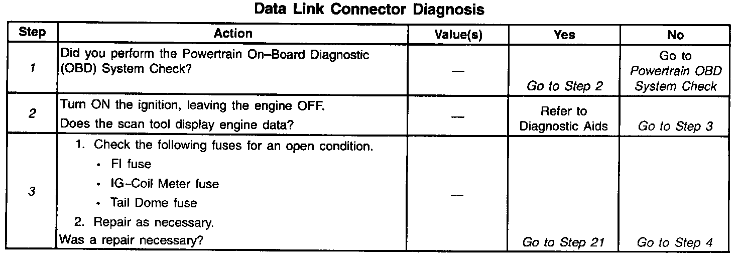 1. The Powertrain (OBD) System Check prompts the technician to complete some basic checks and store the Freeze Frame data on the scan tool if applicable. This creates an electronic copy of the data taken when the fault occurred. The information is then stored in the scan tool for later reference.