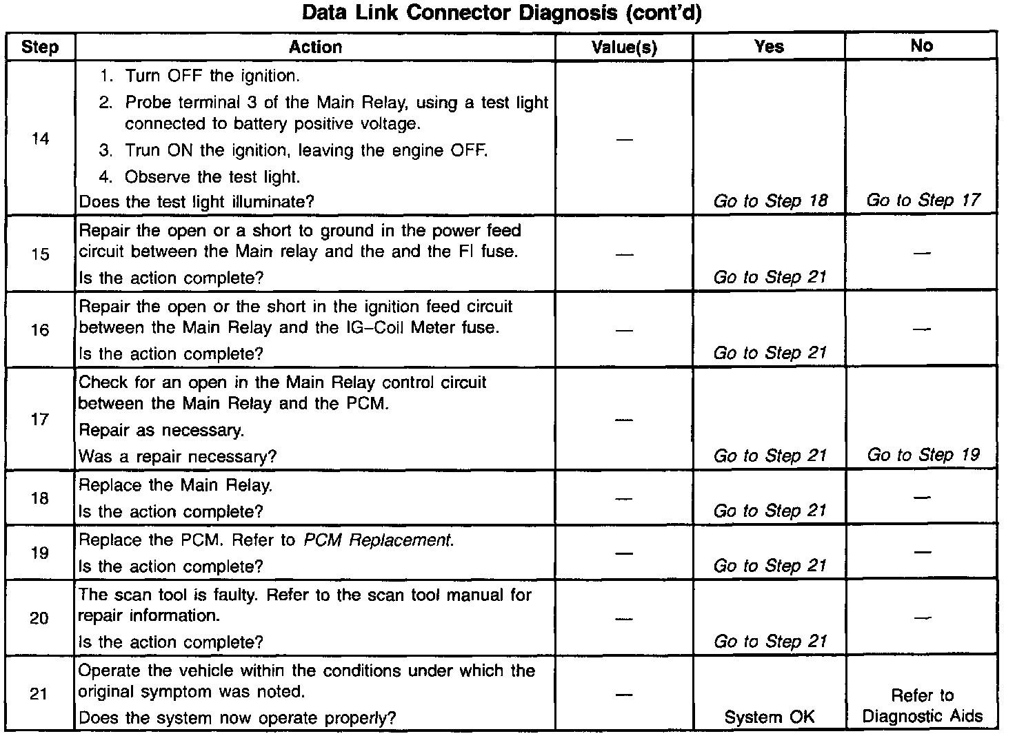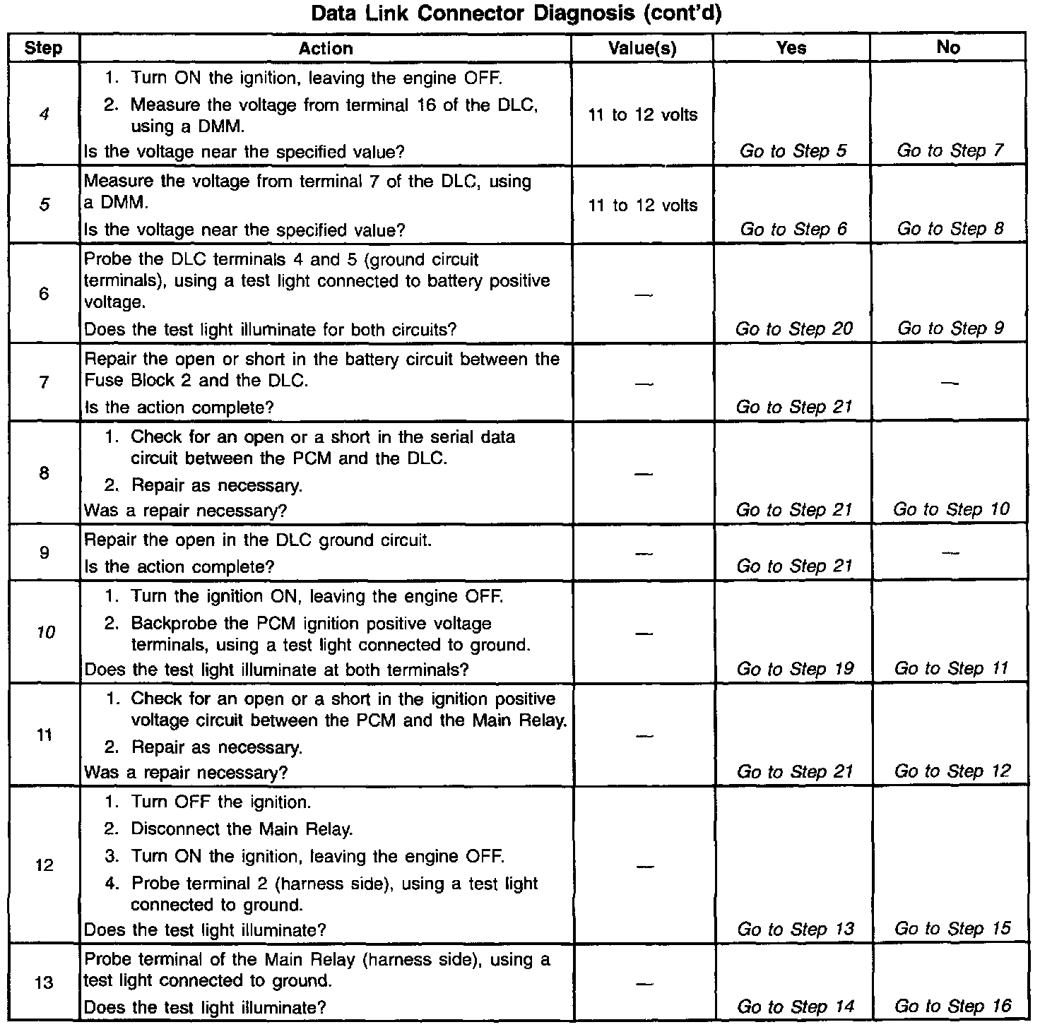 10. This step checks the ignition positive circuit. If voltage is present at the PCM the malfunction is most likely the Main Relay or related circuits.